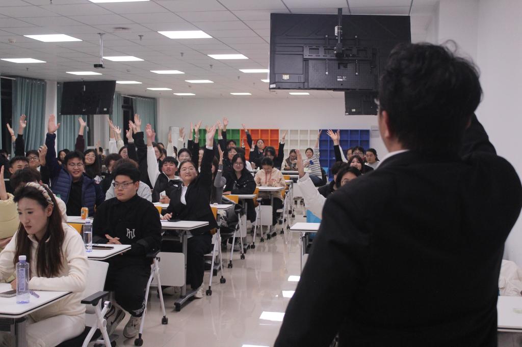 活动伊始,各学院通过盲盒抽签确定上场顺序,随机的排列组合为活动增添了悬念与趣味。分享环节中,11位学子依次登台,带来《你当像鸟飞往你的山》《活着》《平凡的世界》等经典书籍解读。互动环节设置“声音首字母大挑战”“限时人物大挑战”,学子们围绕经典书籍快速抢答,在轻松氛围中深化对名著的理解。